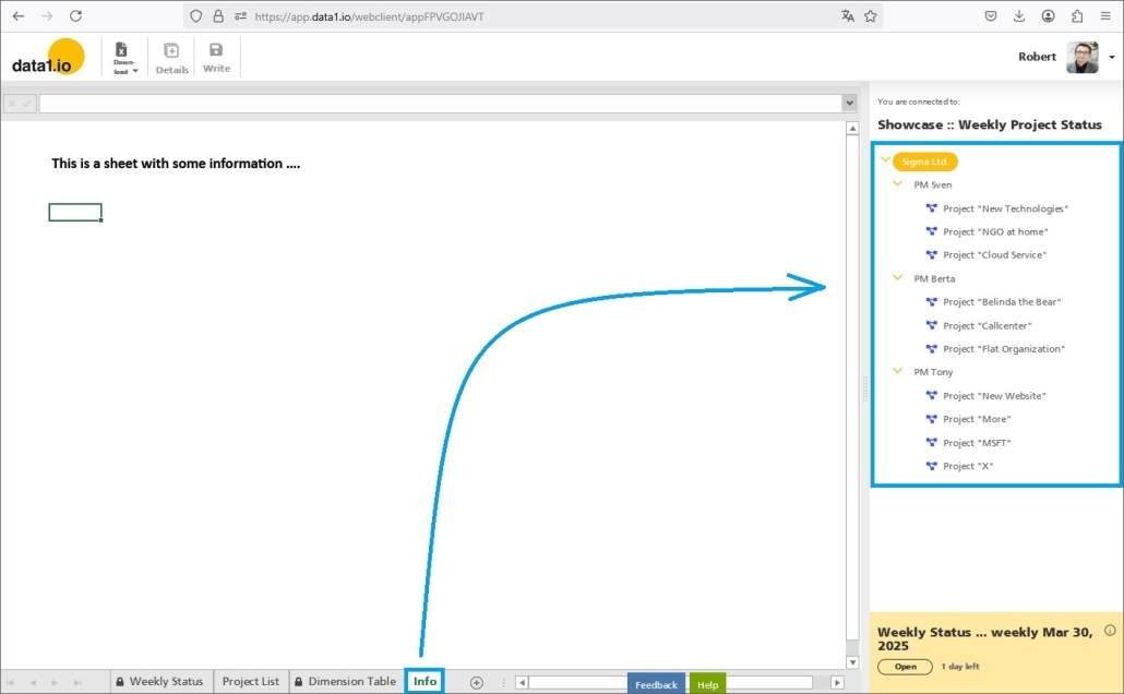 This is enabled by the new writeback functionality in list queries and by a major optimization of alternative level queries. Try it yourself in our Public Showcase “Weekly Project Status”.