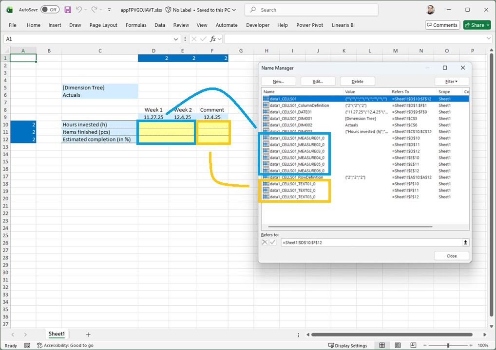 The “By Cell Mode” can be recognized in a workbook by multiple “MEASURExx” and maybe also multiple “TEXTxx” definitions: