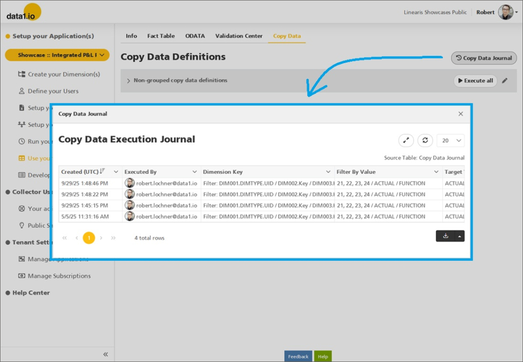 The first one is the Copy Data Journal which can be accessed by the new button within the Copy Data section …