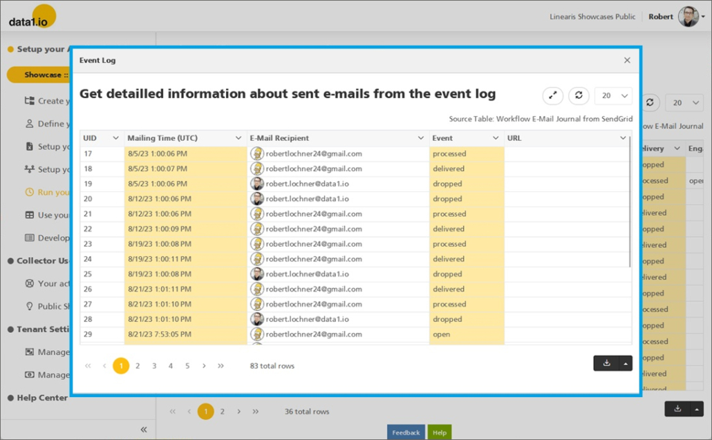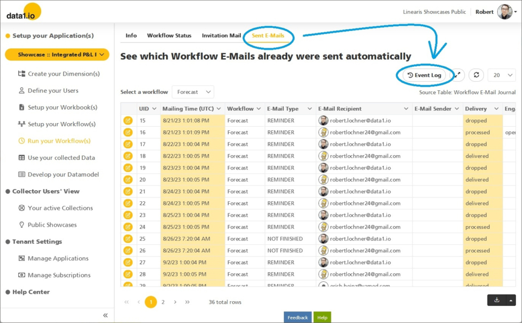 The second one is the Event Log which can be accessed by the new button within the Sent E-Mals section …
