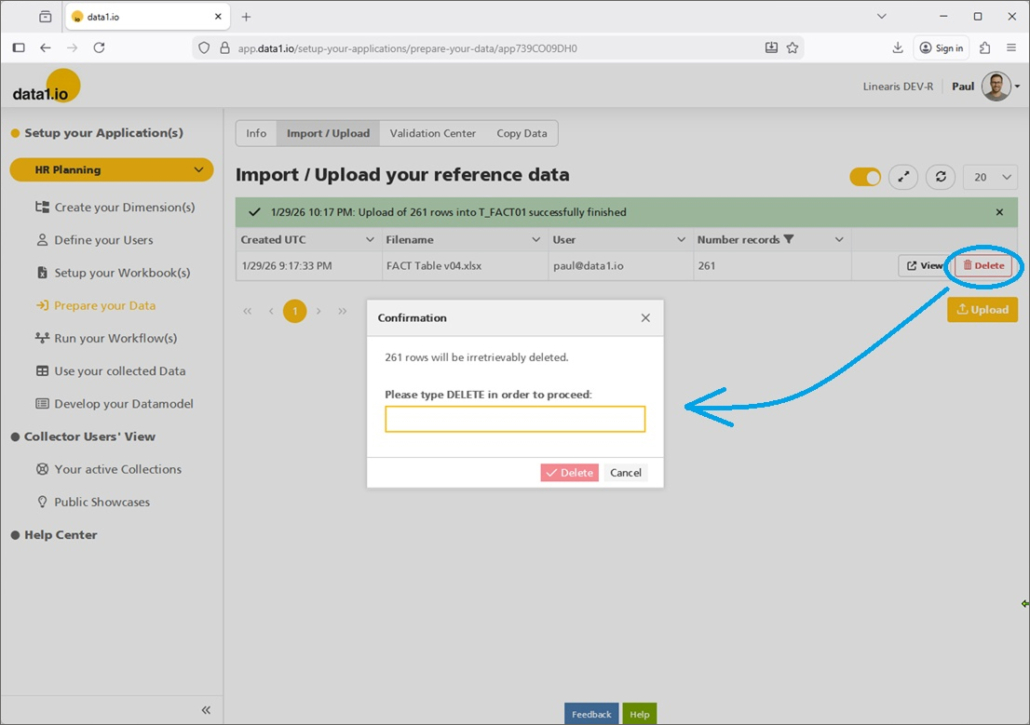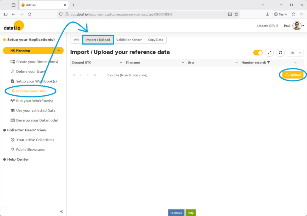In the main menu you`ll find now the new entry “Prepare your Data” with the new “Import / Upload” area: