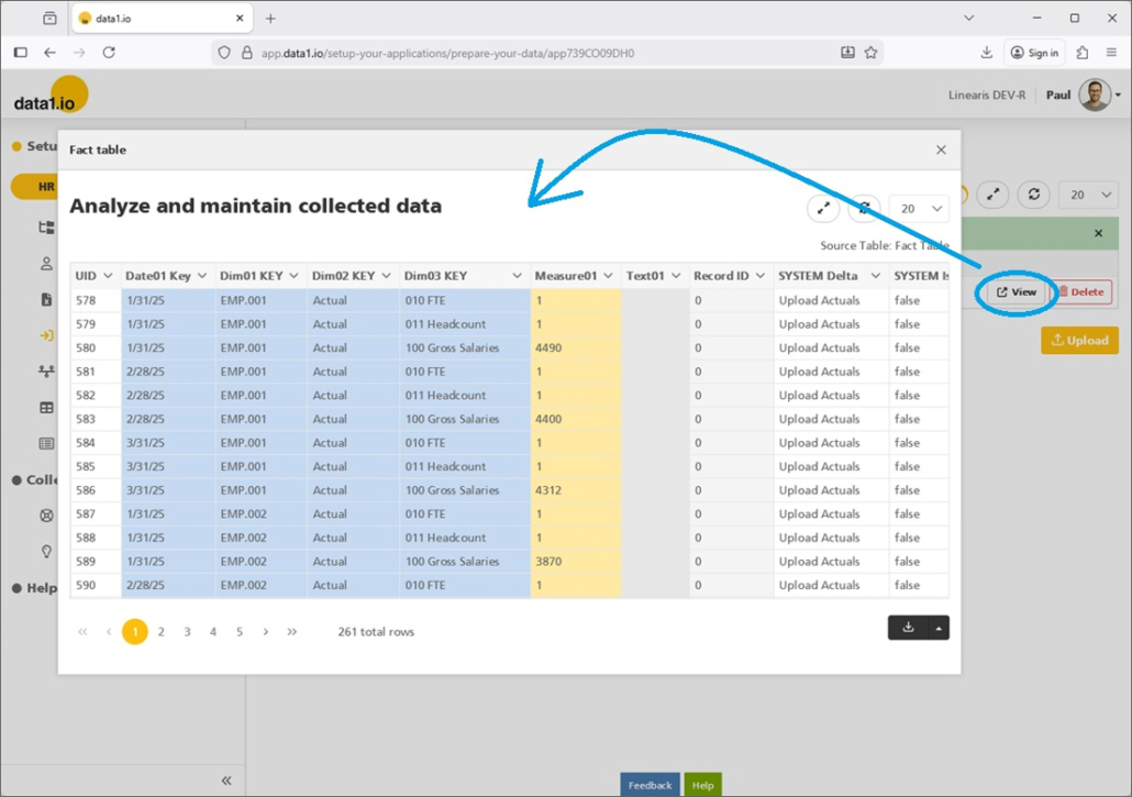 Please be aware that this new screen shows only new uploads either here or in the fact table – formerly imported / uploaded actuals cannot be shown here. You can download and delete your existing actuals from the fact table and upload it once in this new area.