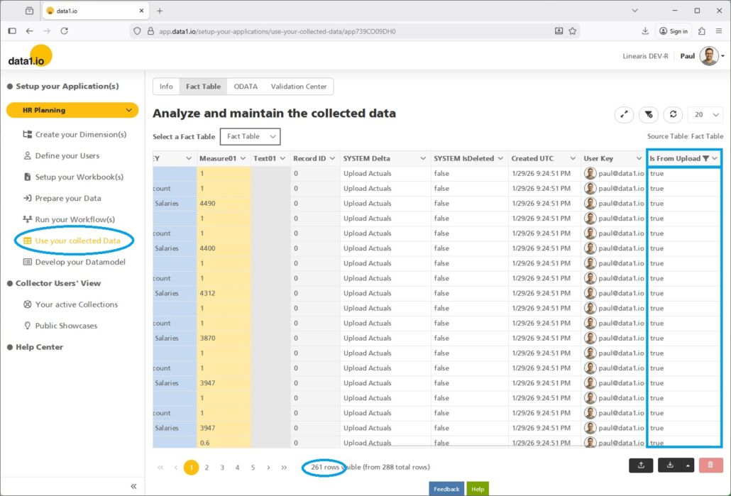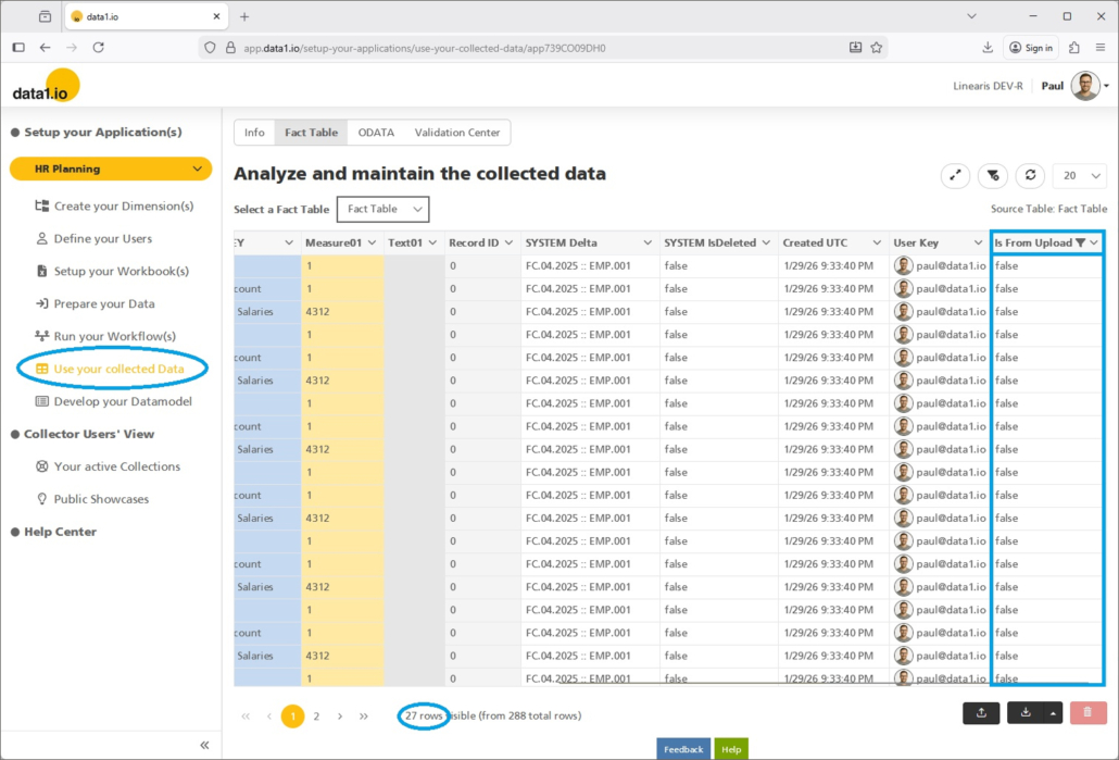 We have added a new column “Is From Upload” to the Fact Table. With this column you can filter exactly the records that you see in the new screen “Import / Upload” …